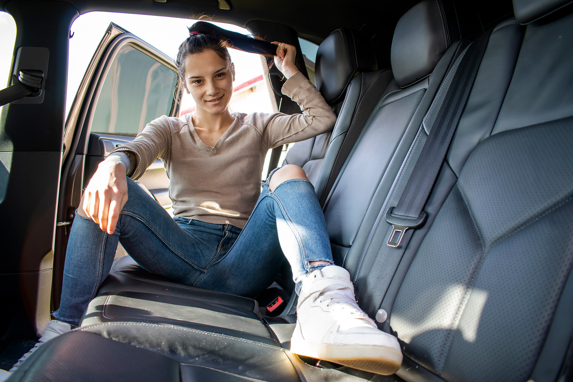 Zoe Foxxy - Brunette teen backseat fucking