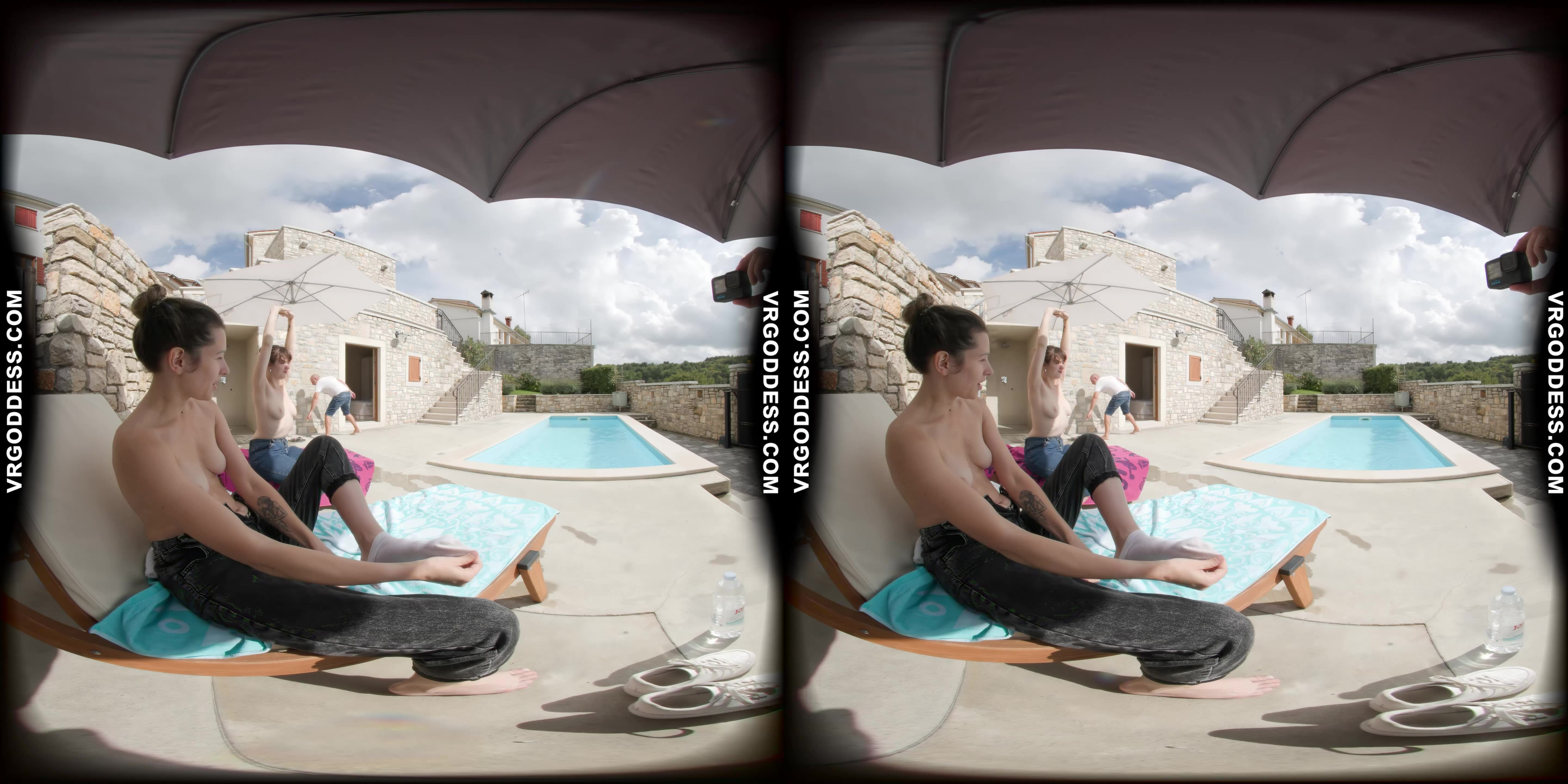 Man, I gotta tell ya, diving into this VR scene with Josie Fresh and Sofie is like stepping into a damn dream. Right from the start, you’re poolside at this gorgeous Italian villa, the sun shining, and these two are just lounging naked, soaking up rays. The way they tease and giggle, it’s like they know exactly how to pull you in. Honestly, it’s pure heat from the get-go.