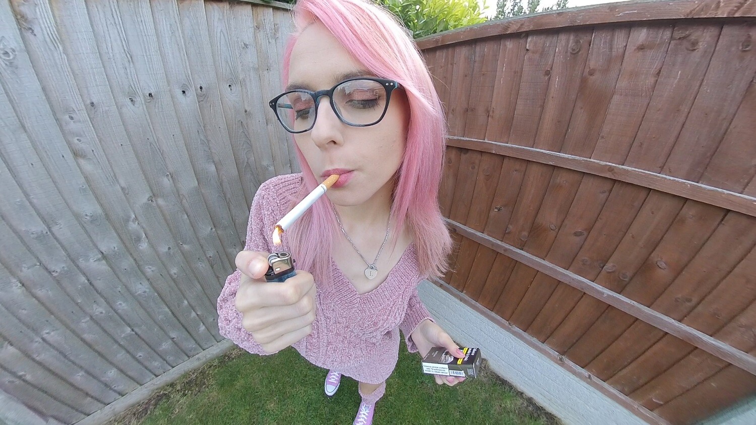 The beautiful Chloe Toy has a smoke in her garden, wearing a very comfy but loose fitting outfit, if you look closly you may just get a delightful nip-slip as she blows smoke for your pleasure!