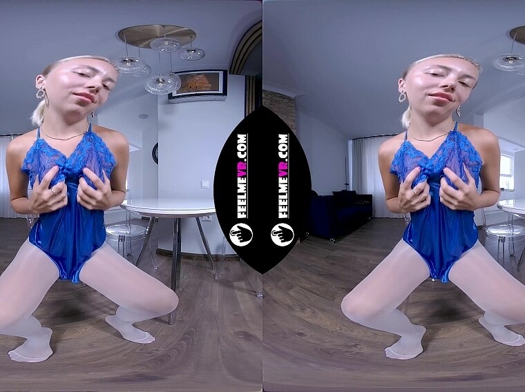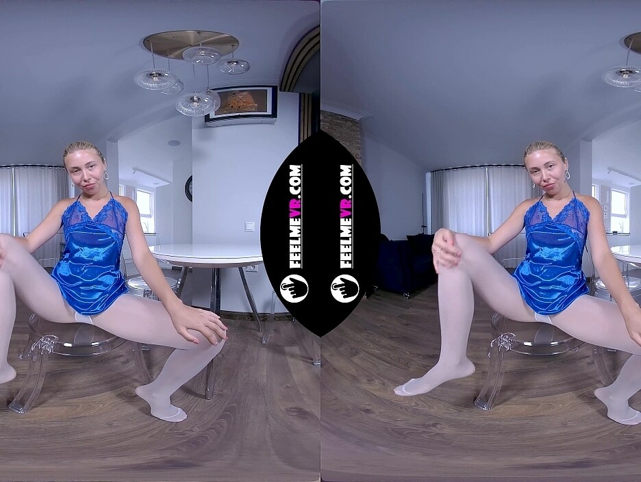 VR180 Blonde Teen With Small Tits Nico Rips Pantyhose
