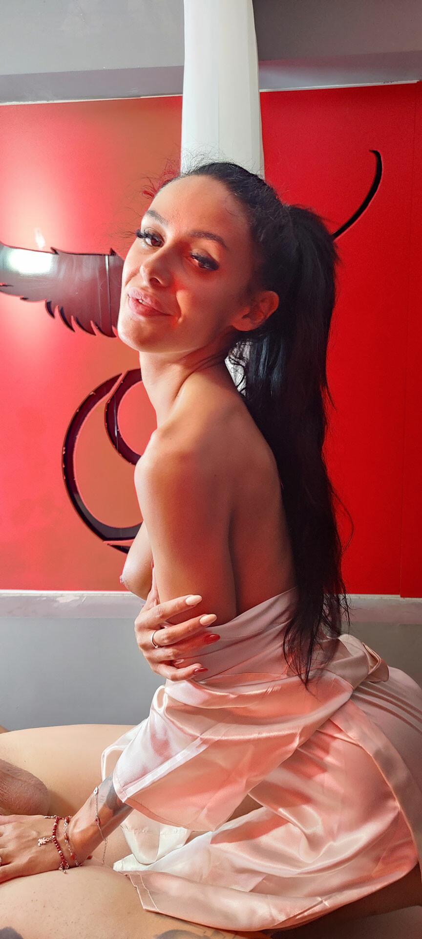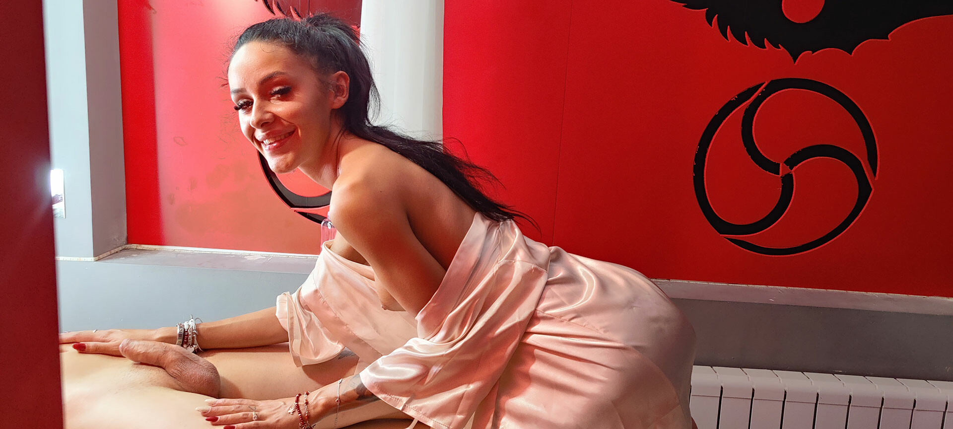 She begins by expertly massaging your muscles, working out all the kinks with her skilled fingers and a generous helping of oil. As she moves from position to position, you'll find yourself becoming more and more entranced by her sultry performance.