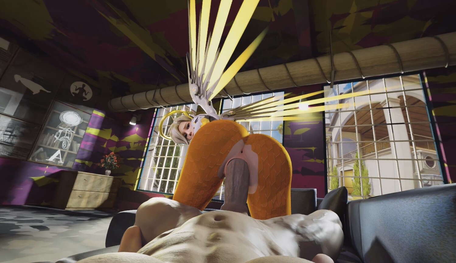 Half past noon, and you haven’t gotten up off the couch. You slept here too. It’s just really comfy. Mercy, that sweetheart, she’s teasing that you need to get up and go get a job. Nah. But Mercy will do what she needs to get you moving.