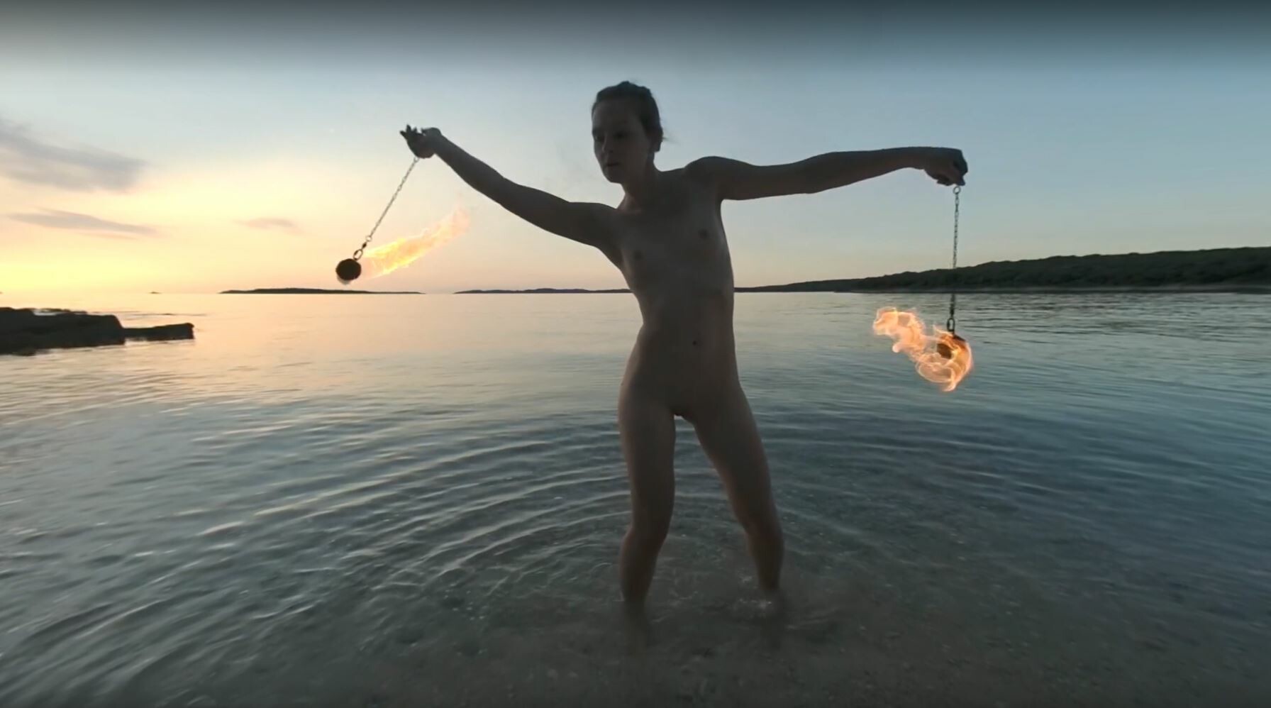Special Fire Dancing Naked On Sunset Beach Extra Long And Hot With Redhead Lea On Vacation