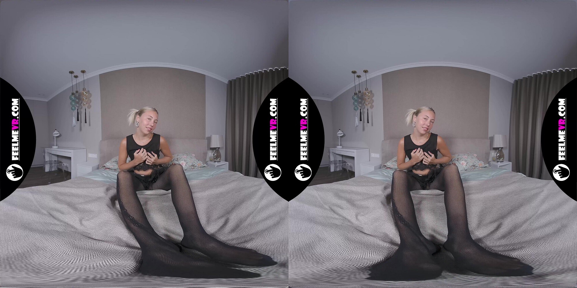VR180 Blonde Teen With Small Tits Nico Rips Pantyhose