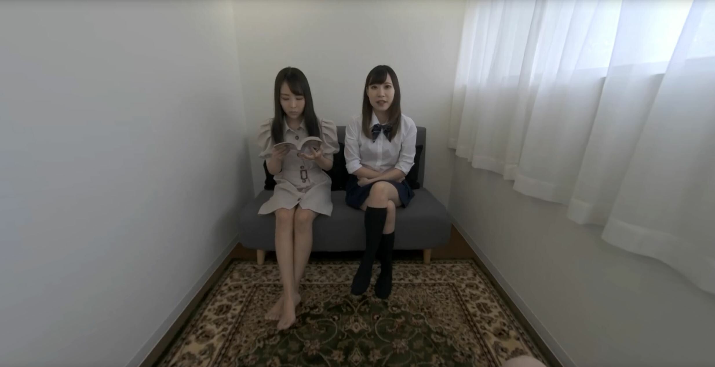 Your cute young English conversation student Miriya brings along a guest to today’s lesson–turns out it’s her step-sister Emiri. Not inclined to join the lesson, Emiri waits quietly engrossed in her book.