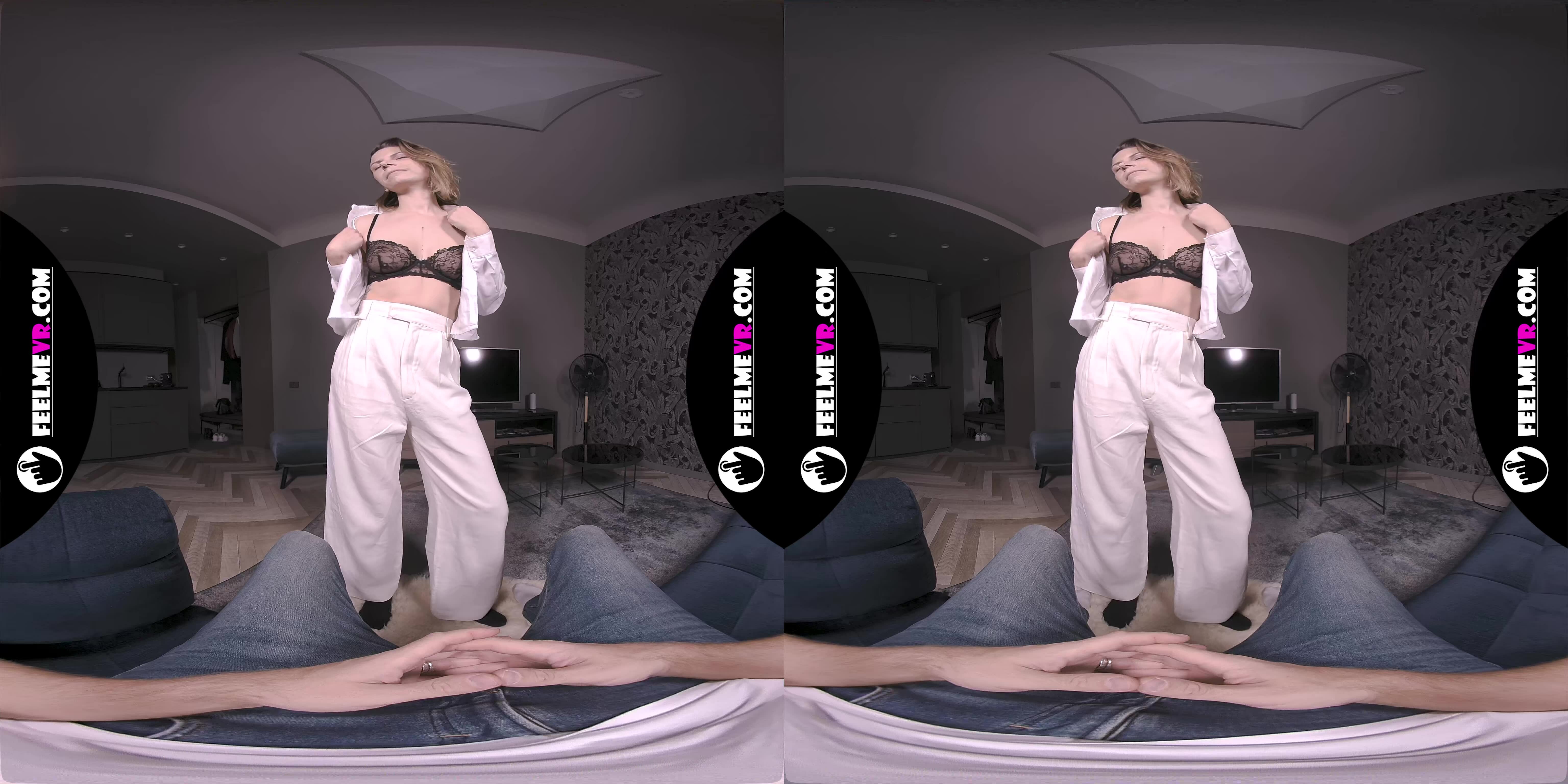 The way she starts slow, with those seductive moves, builds this crazy tension. When she gets into the sensual tease, swaying and stripping, it's absolutely mesmerising. Honestly, the way her eyes lock with yours through the headset? Pure magic, dude. My heart was racing as the scene heated up, every gesture ramping up the desire.
