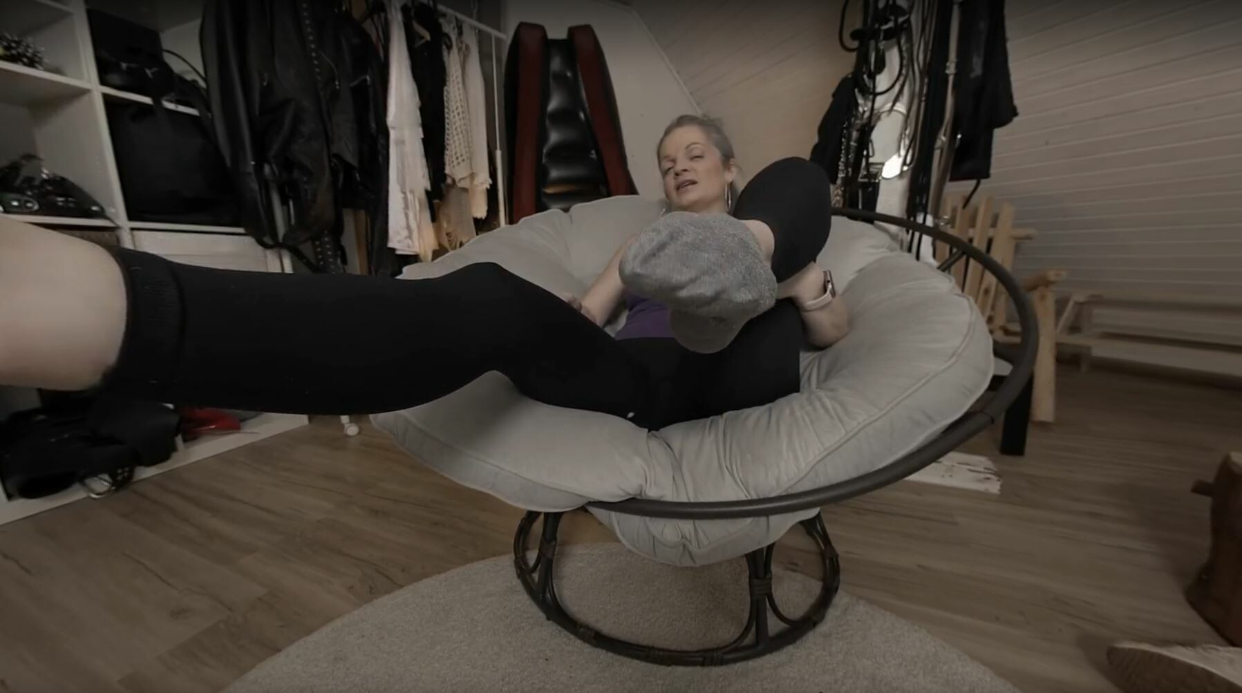 The tension builds quick as Sabdeluxe teases with little moves, her energy shiftin’ from playful to straight-up intense. When she gets into that cowgirl position, holy crap, it’s like the room heats up—her control and rhythm just take over. Then, flippin’ to reverse cowgirl, you feel every pulse, every moment of her confidence stealin’ the show. Honestly, the way she locks eyes through the VR, it’s almost too much.