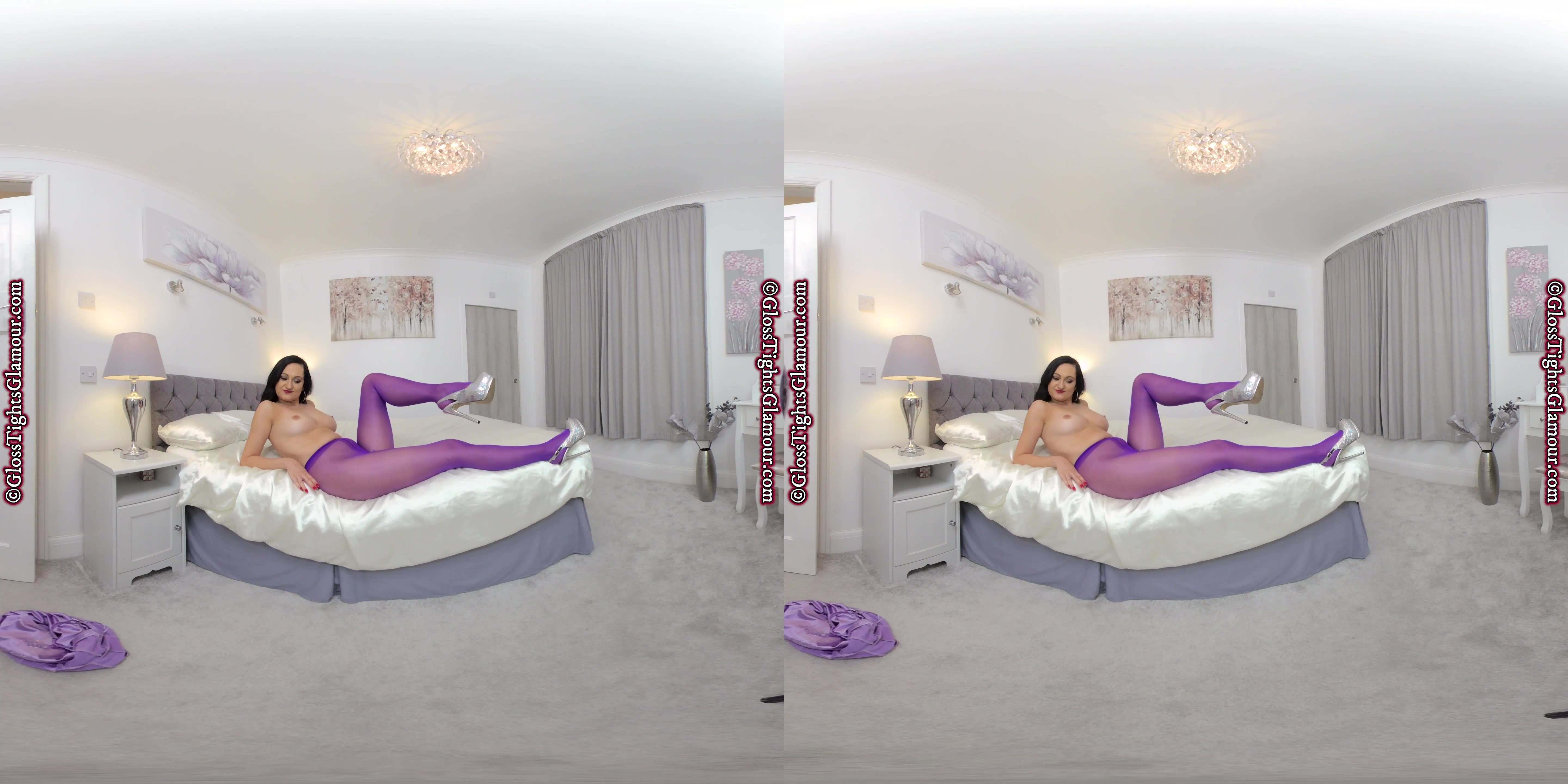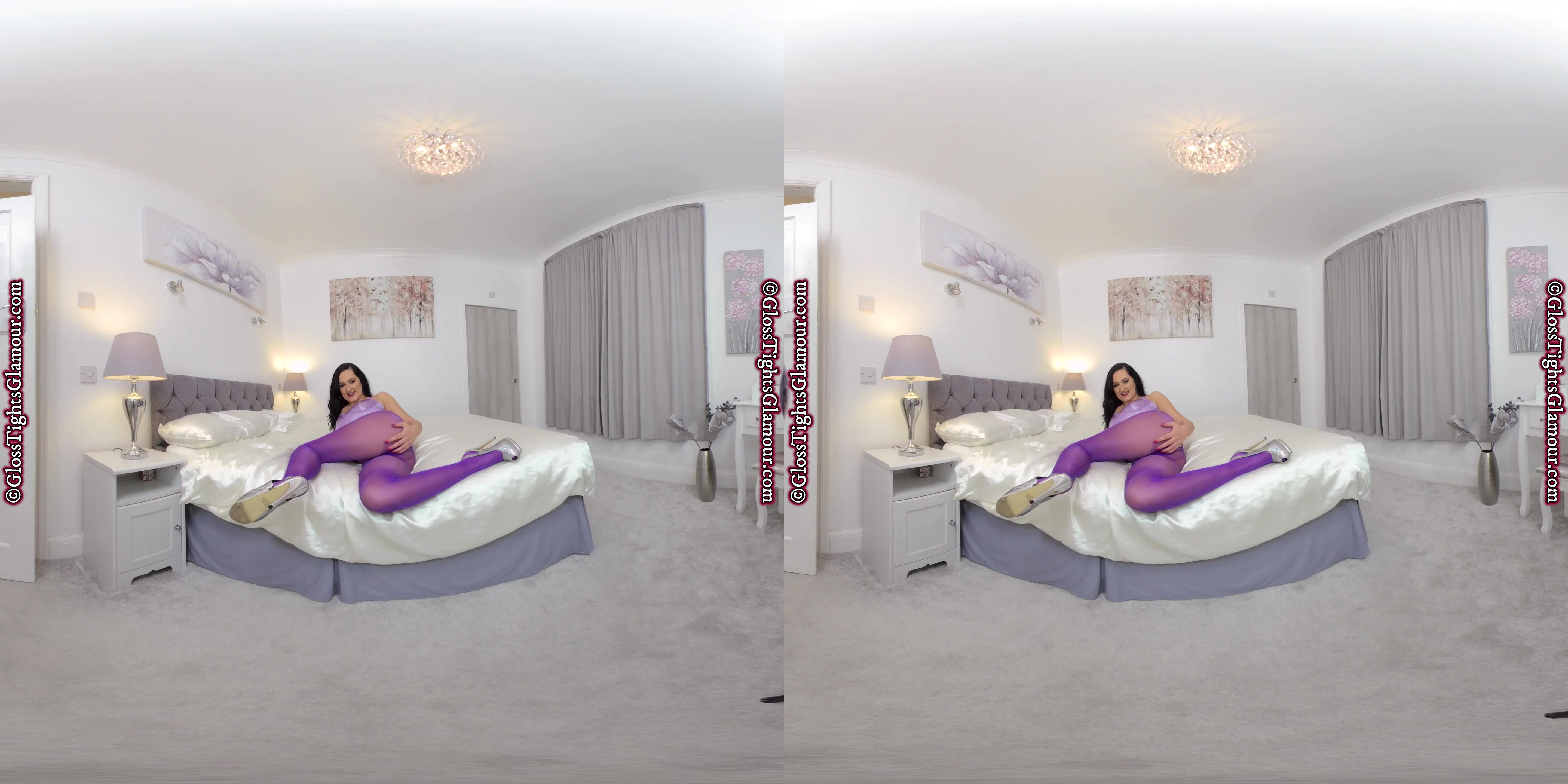 Wearing a purple satin dress with purple glossy tights/pantyhose Bonnie is about to seduce you as she teases to please and encourage you to enjoy yourself whilst removing various garments to provide an unfettered view of her glorious legwear. I think it’s fair to say this JOI VR video will definitely hit the spot!