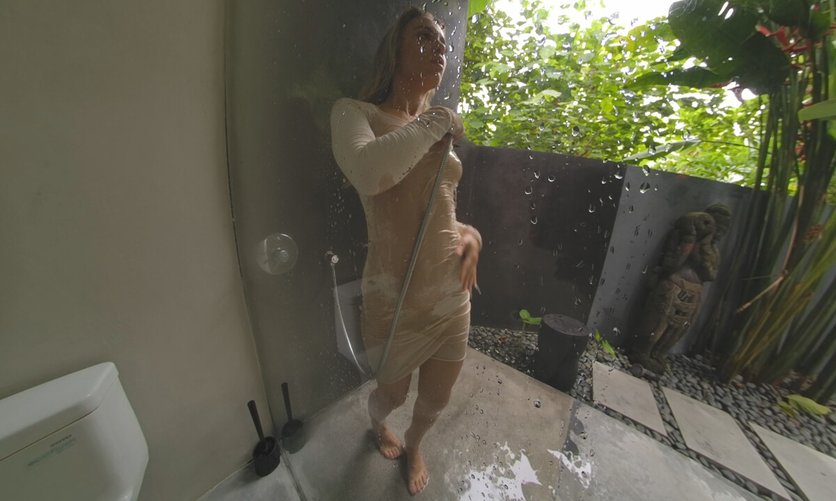 By the time she’s fully into it, the steam, the water, the raw energy—it’s all just overwhelming in the best way. The climax hits like a damn explosion, leaving you kinda stunned and totally satisfied. I must say, the way she plays off every drop of water makes this immersive VR experience absolutely unreal.