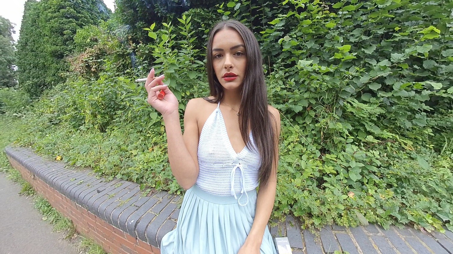 Join Kim Model as she enjoys a nice smoke on this lovely summer day here in the UK, (we don’t get many sunny days!). Get up close and personal wih this beauty as she blows her smoke directly in your face!