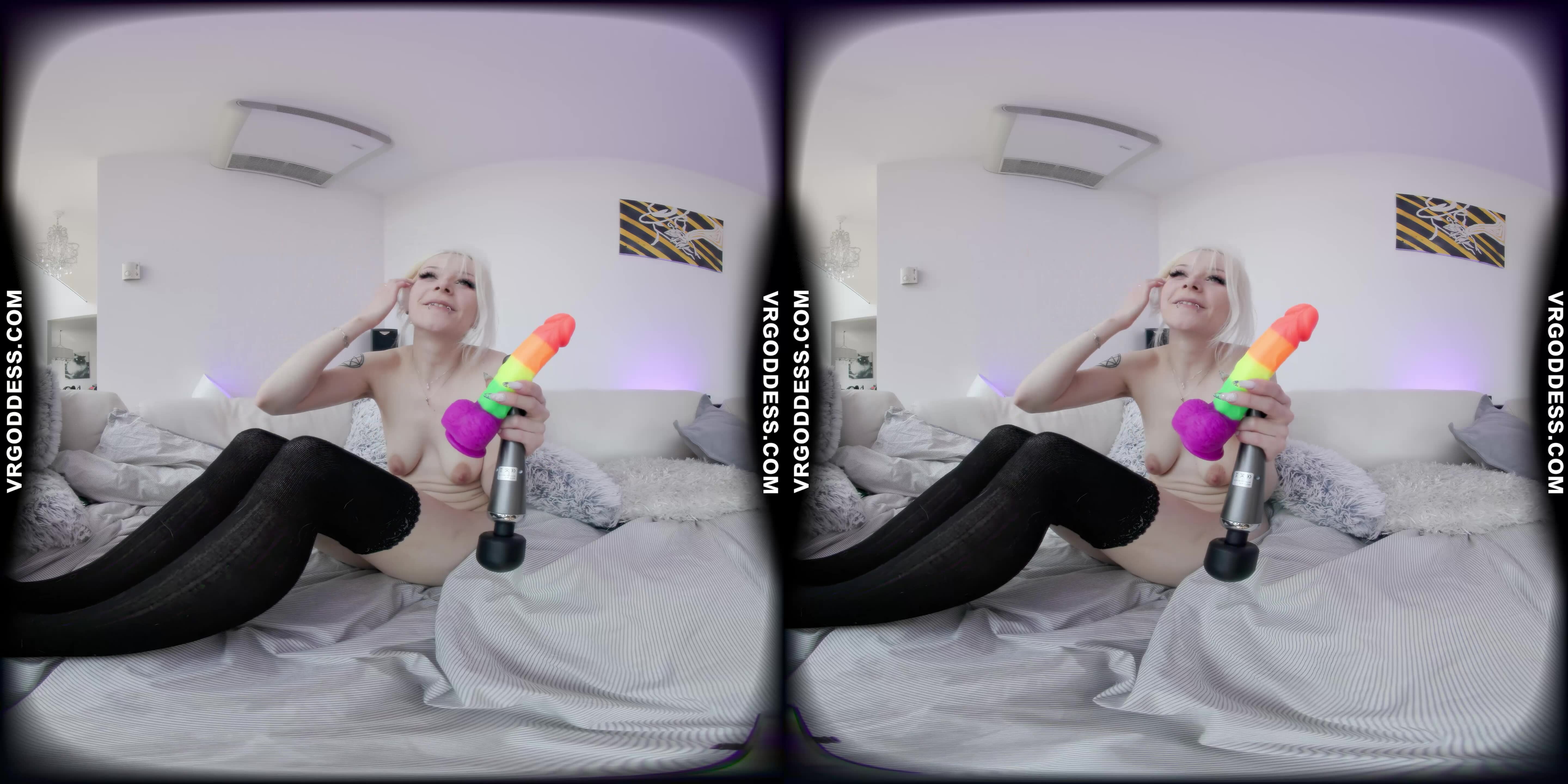Lily Angelic Solo Play with Rainbow Dildo in VR