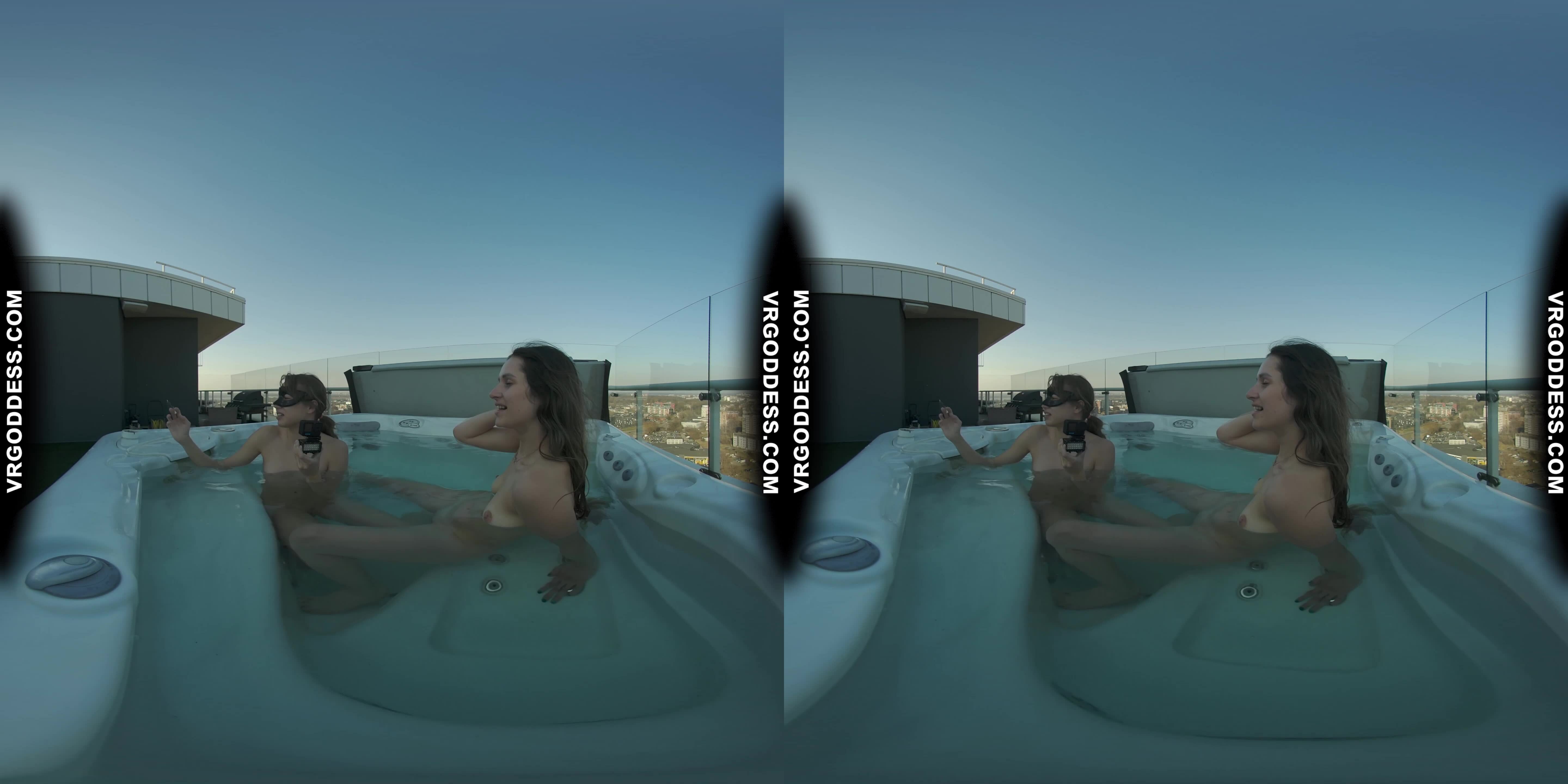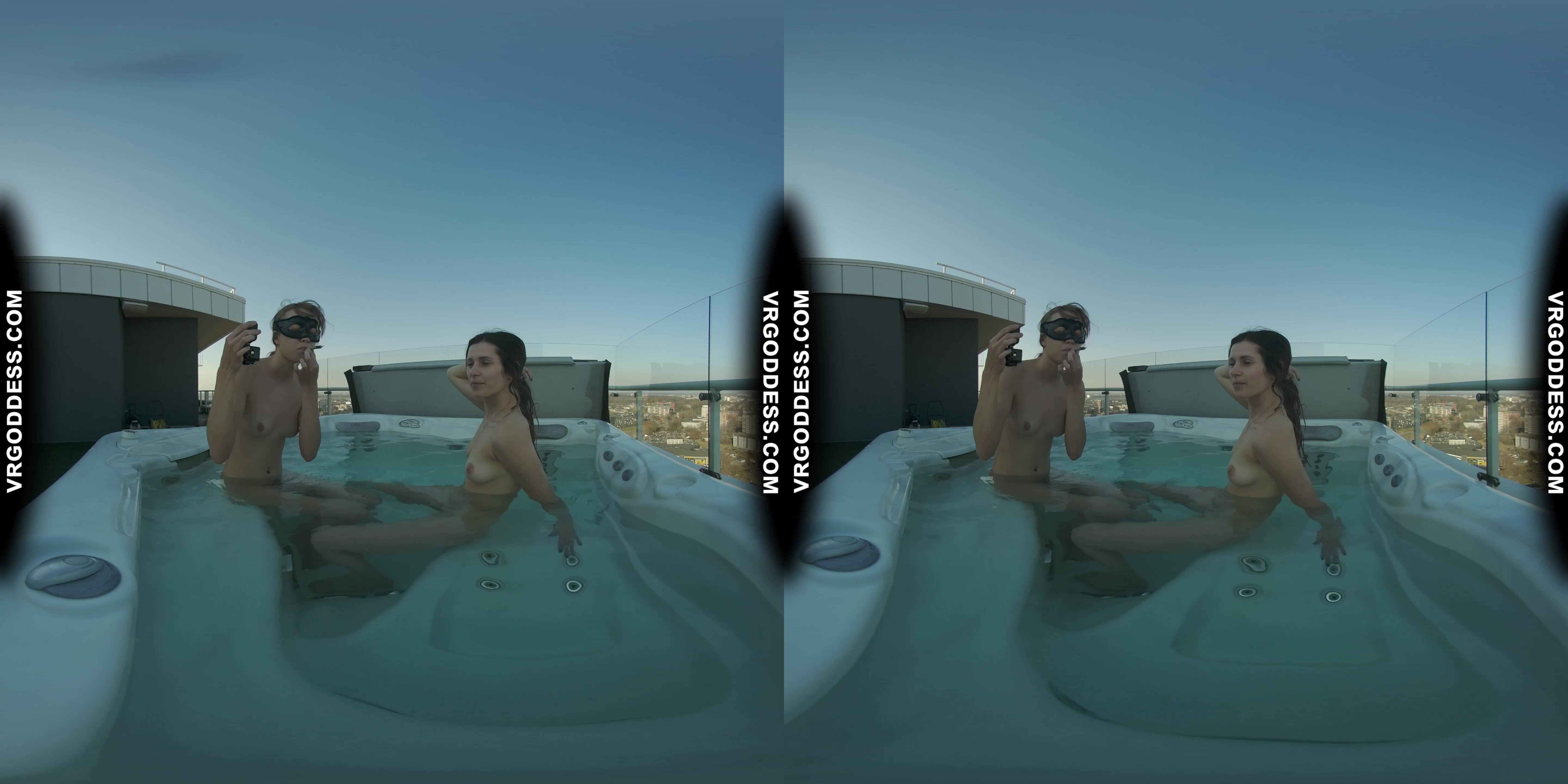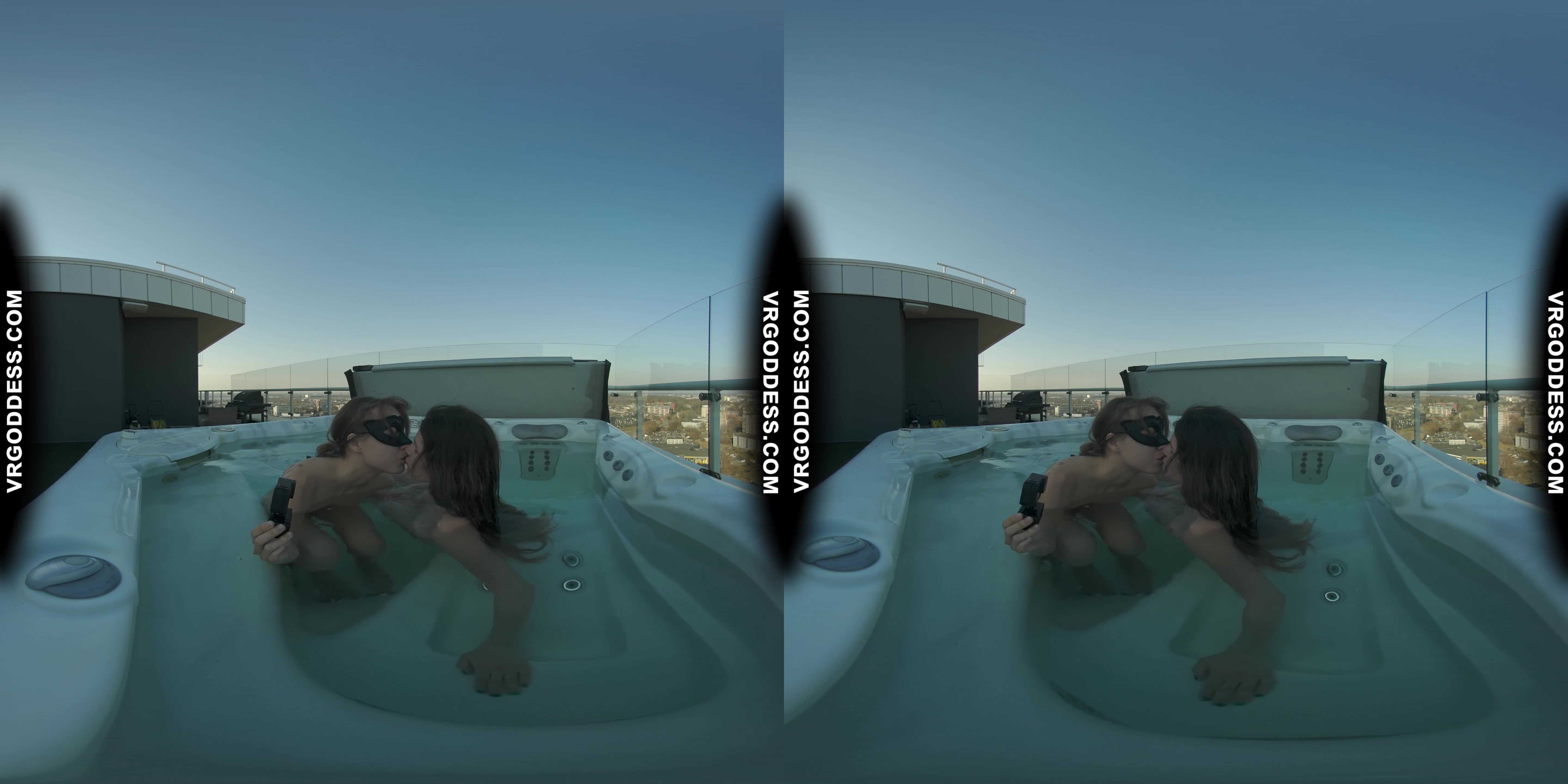 Josie and Miss Pussycat bring the heat in this sultry rooftop jacuzzi escapade! As they lounge naked by the water's edge, their lesbian chemistry is palpable. The camera pans out to reveal the stunning 4K visuals and immersive VR setting, making you feel like you're right there with them.